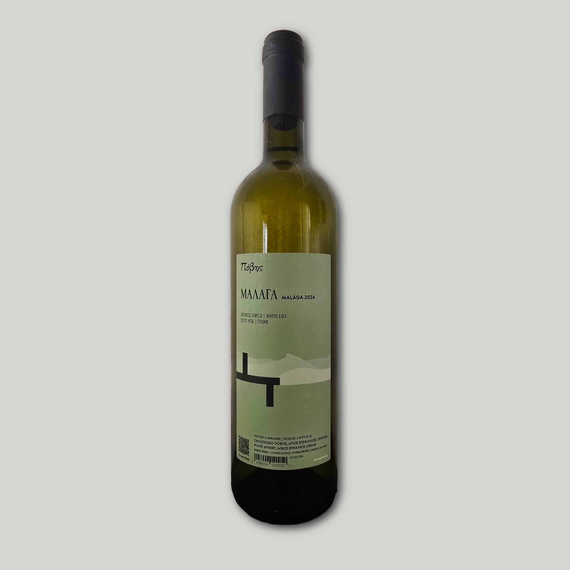 Single variety dry white wine made from local Malaga (Muscat) grapes. 750ml | ABV 12.5%